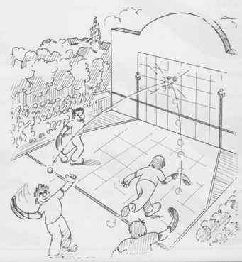 - Le but, pour lequel le ricochet de la pelote au mur est obligatoire avantage les bons buteurs
